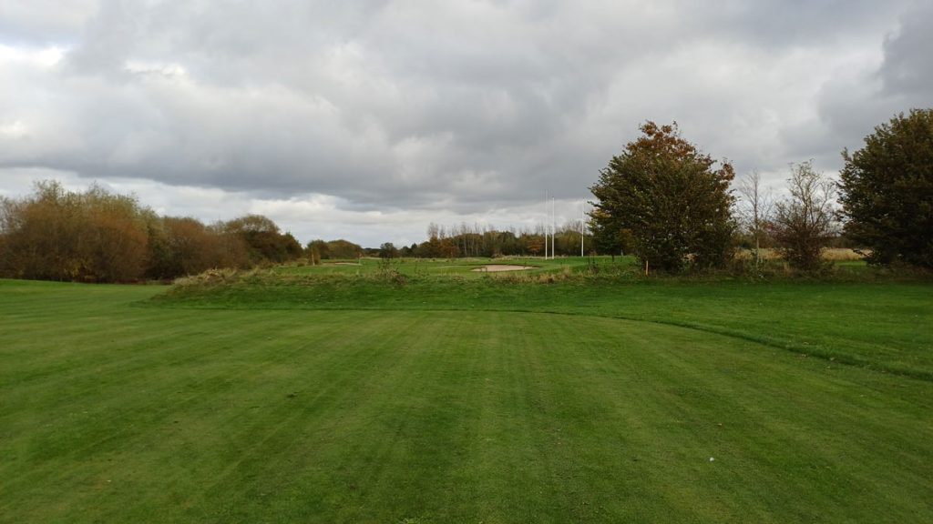 Her ses green på hul ni i baggrunden. Buskene på højen er skåret ned i venstre side.
