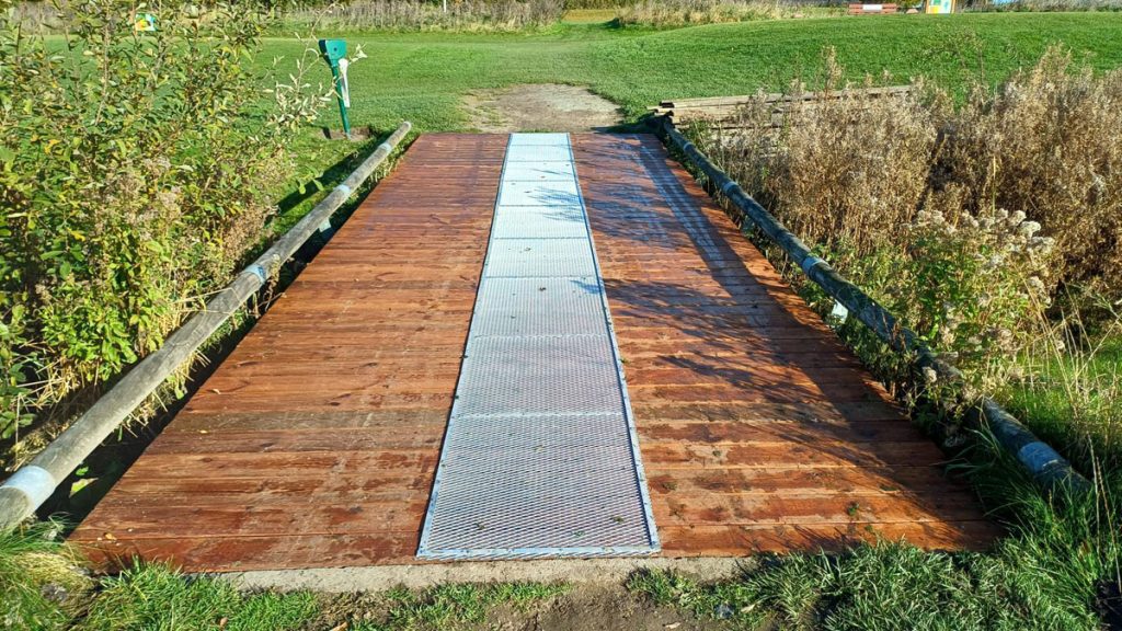 Her i oktober er der blevet lavet forbedringer på banen – eller i hvert fald ændringer. Alle kan jo nok blive enige om, at træbroen over vandløbet mellem hul tre og fire trængte til at blive udskiftet.