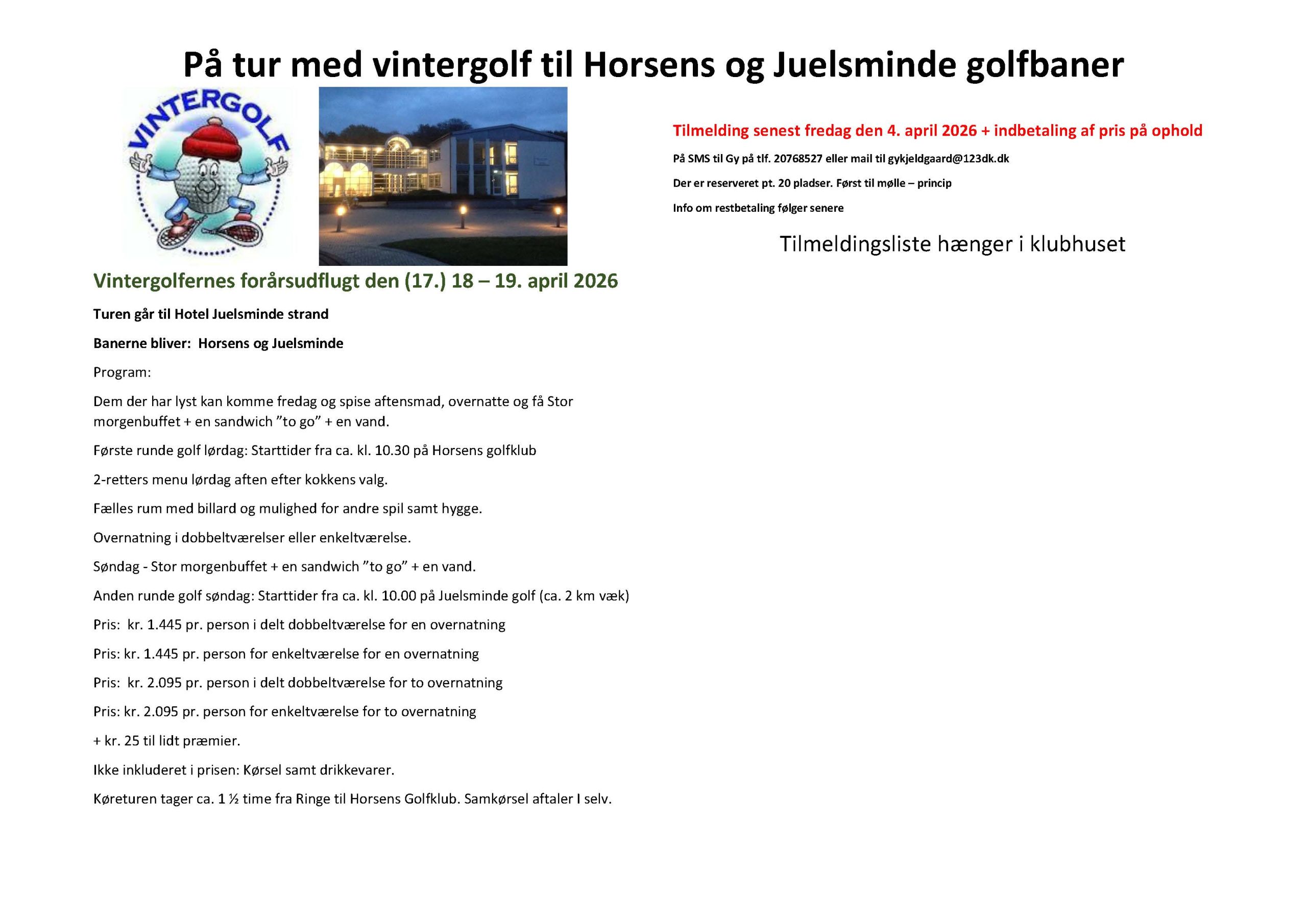 Vintergolf vil derfor traditionen tro gerne invitere til julefrokost lørdag d. 13.12.2025 ca. kl. 12.30, efter vi har spillet vores vanlige 9 huller golf.
